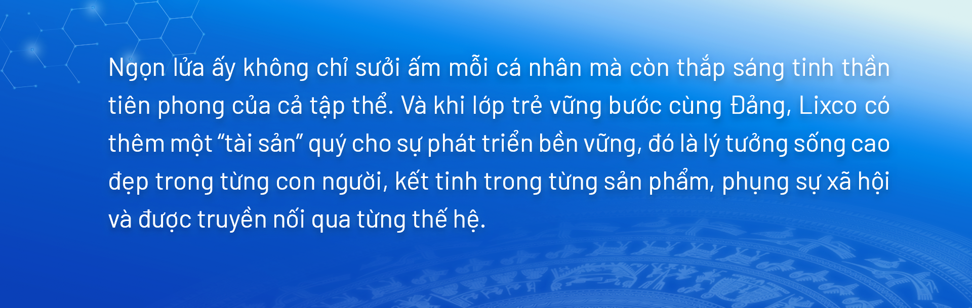 Dưới sự lãnh đạo toàn diện và định hướng nhất quán của Đảng ủy, cùng sự đồng hành của chính quyền, đoàn thể trong quá trình giác ngộ lý tưởng Đảng cho thế hệ trẻ Lixco, những thanh niên, đảng viên trẻ được tiếp thêm niềm tin, tri thức và môi trường rèn luyện để trưởng thành.