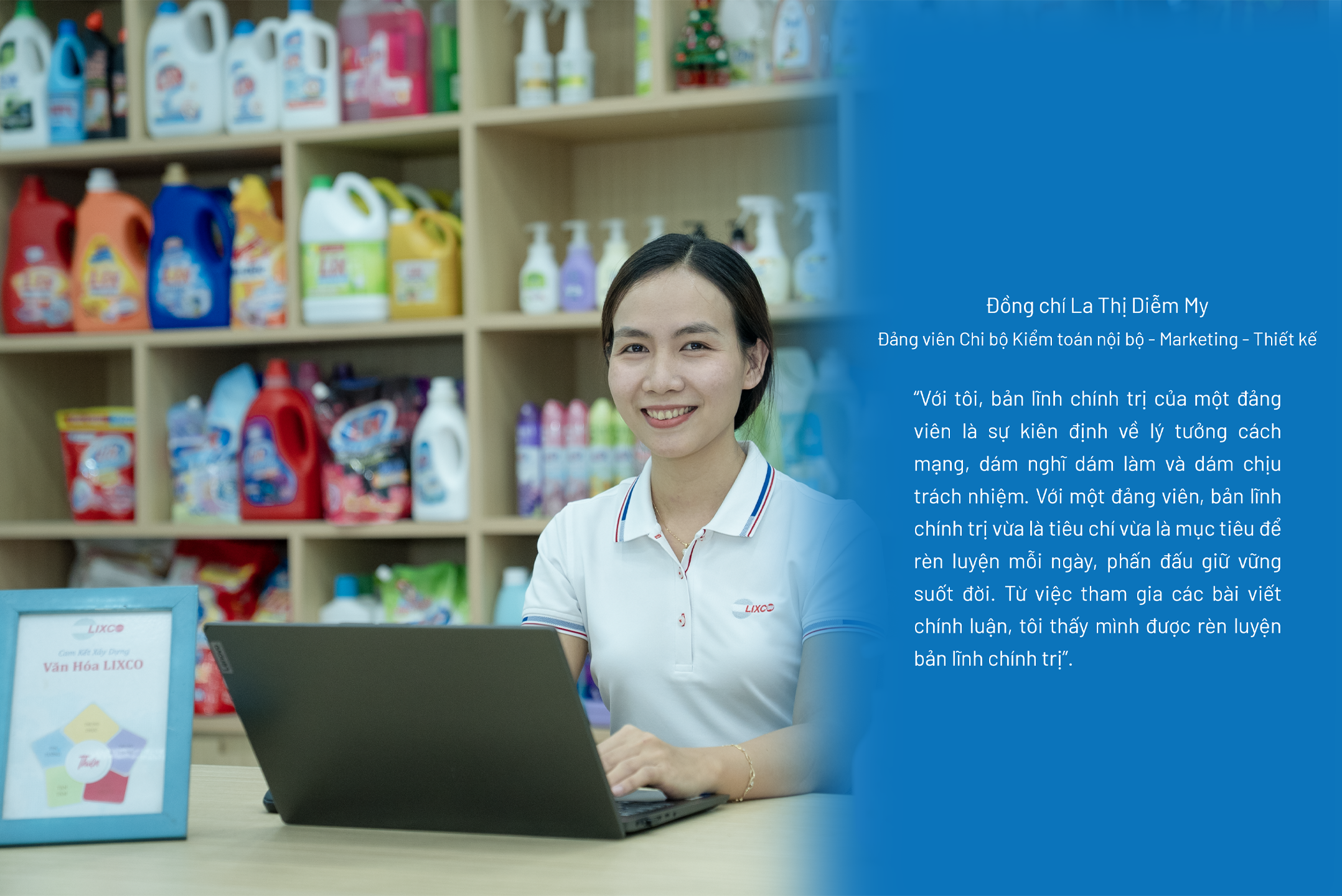 Điều này càng trở nên quan trọng trong bối cảnh hội nhập, khi thế hệ trẻ thường xuyên phải đối mặt với nhiều cám dỗ và thách thức của thời cuộc có thể làm lung lay niềm tin bất cứ lúc nào. Chính sự kiên định mục tiêu, không ngừng rèn đức, luyện tài đã giúp Diễm My xây dựng một nền tảng bản lĩnh vững chắc để tự tin bước đi trong thời đại mới. Không chỉ dừng lại ở việc đứng vào hàng ngũ của Đảng, Diễm My còn lan tỏa tinh thần quan tâm về chính trị – xã hội, biến lý tưởng thành động lực cống hiến đến những người xung quanh, trong đó có thanh niên Lixco. Điều đó là minh chứng rõ nét cho bản lĩnh chính trị của một đảng viên trẻ: Vững vàng về tư tưởng, sâu sắc trong lý luận và trách nhiệm với cộng đồng.